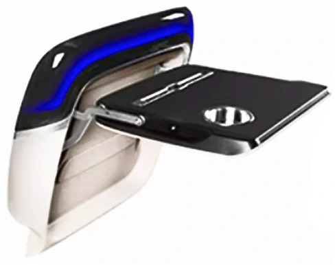 Stolek za sedačky Aurora Mercedes Benz V-Class & Vito (W447) je praktickým a stylovým doplňkem, který výrazně zvyšuje komfort při cestování. Tento stolek je ideální pro práci na cestách i pro pohodlné používání tabletu nebo notebooku. Příjemnou atmosféru dokresluje osvětlený dekór ve stylu polární záře tzv. Aurora.